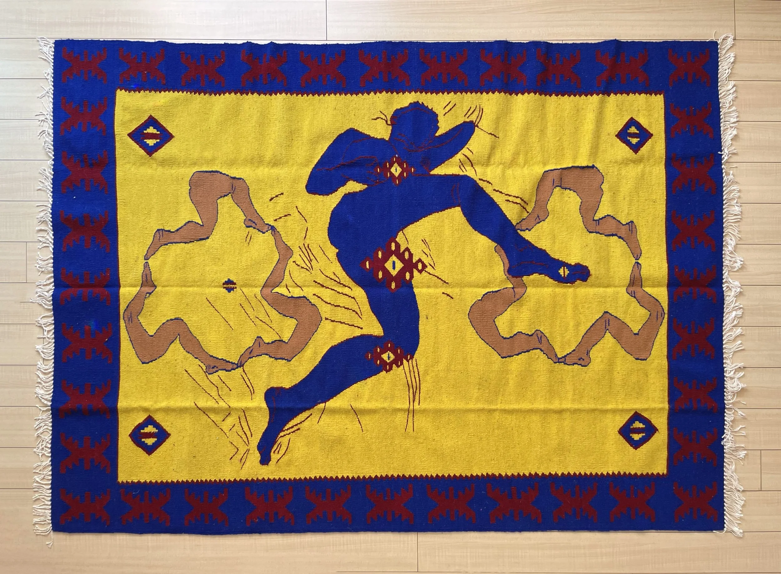 My research and practice over the last couple of years have focused on weaving voices like mine into a culture that has historically erased and ostracized LGBTQI+ people. In confronting the history of my birth nation, Albania, while grappling with assimilation as an immigrant in the United States, I seek to build bridges between place and time while simultaneously disrupting existing conventions. For me, this liminal space of double consciousness, a sense of belonging to either land, runs through each thread of each qilim. Work from this series appeared in Biddy’s Garden at Transformative Arts in Los Angeles from February 18–April 9, 2022.